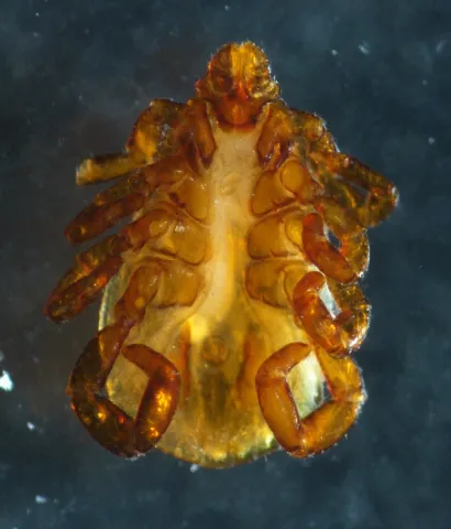 Fyrir helgi barst Tilraunastöð Háskóla Íslands í meinafræði að Keldum eintak af brúna hundamítilinum (Rhipicephalus sanguineus s.l.) sem fannst á hundi af Suðurlandi. Um var að ræða karldýr, 3 mm að stærð (sjá mynd 1). Þar sem þessi mítlategund er ekki landlæg hér á landi var Matvælastofnun gert viðvart og stofnunin fór í aðgerðir til að uppræta smitið.