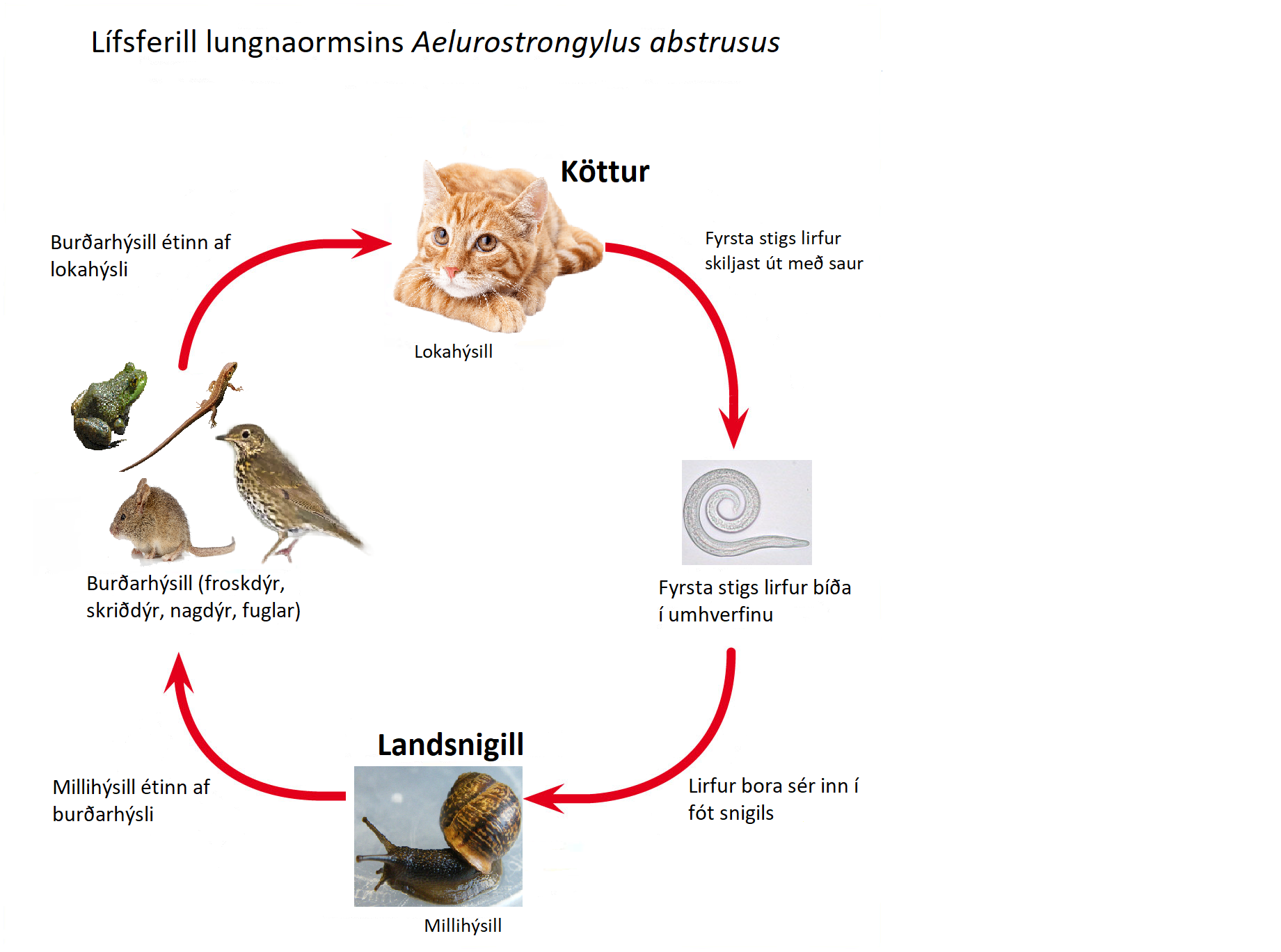 Sníkjudýradeild Tilraunastöðvarinnar á Keldum sinnir meðal annars leit að sníkjudýrum í innfluttum hundum og köttum. Fyrr í þessum mánuði greindist, í fyrsta sinn hérlendis, lungnaormurinn Aelurostrongylus abstrusus í ketti sem dvaldi í einangrunarstöð.