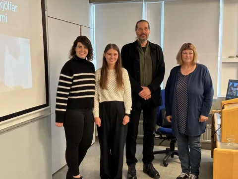 Andmælandi við meistaravörnina var Jóna Freysdóttir prófessor í ónæmisfræði við Læknadeild Háskóla Íslands og sérfræðingur við Ónæmisfræðideild Landspítalans.