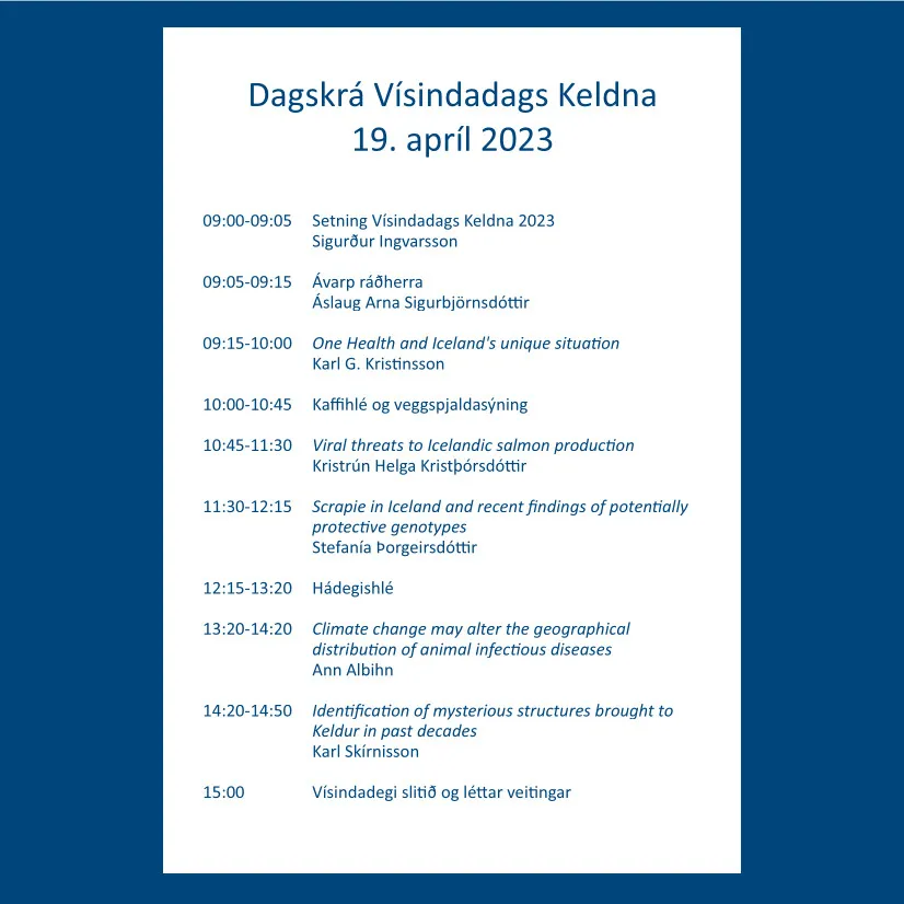 Vísindadagur Keldna verður haldinn 19. apríl og er dagskrá hans hér fyrir neðan.